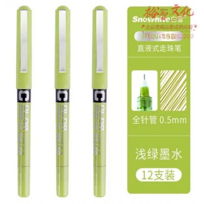 白雪(snowhite) 直液式水性走珠笔中性笔0.5mm彩色签字笔PVN159 浅绿色12支/盒 (SKU:yzwhyp927174