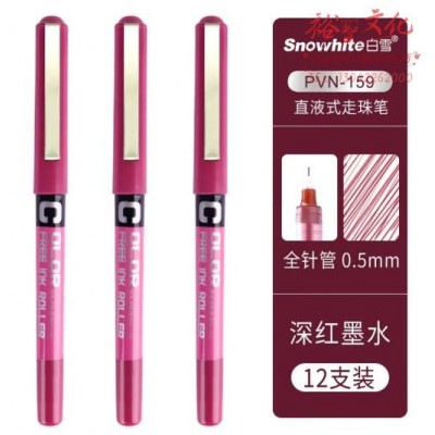 白雪(snowhite) 直液式水性走珠笔中性笔0.5mm彩色签字笔PVN159 深红色12支/盒 (SKU:yzwhyp927177