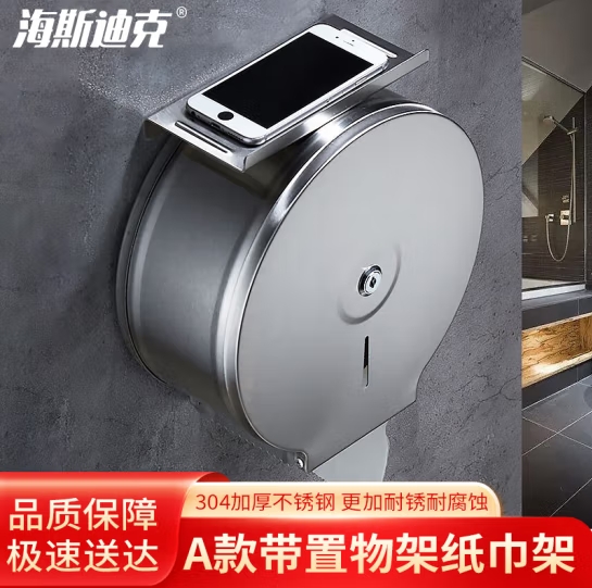 海斯迪克HKxy-62不锈钢厕所 卫生间纸巾盒 洗手间大卷纸盒 304加厚钢-A款带架 (SKU:yzwhyp927193