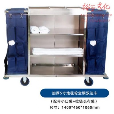 惠利得 布草车酒店宾旅馆烤漆客房口双边楼层清洁工作收集打扫手推服务车 加厚5寸地毯全钢双边-小口袋 拉链 (SKU:yzwhyp927227