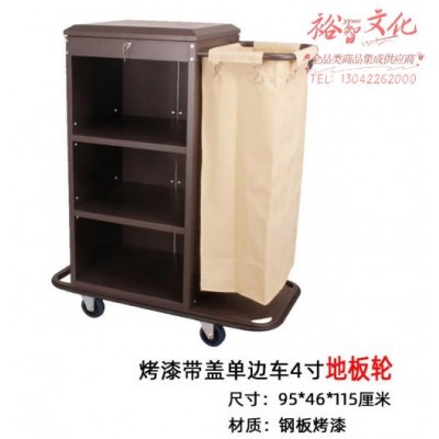 惠利得 布草车酒店宾旅馆烤漆客房口双边楼层清洁工作收集打扫手推服务车 带盖烤漆单边布草车4寸地板轮 (SKU:yzwhyp927228