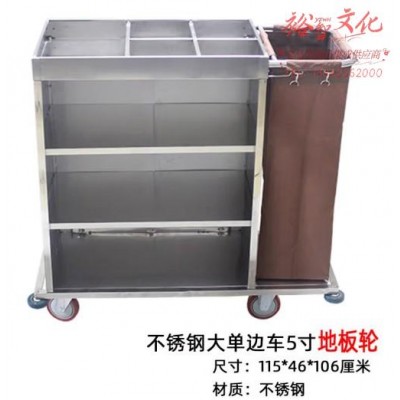 惠利得 布草车酒店宾旅馆烤漆客房口双边楼层清洁工作收集打扫手推服务车 不锈钢大单边车5寸地板轮 (SKU:yzwhyp927229