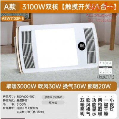 箭牌浴霸 AEW1103F-5卫生间浴霸灯 浴室取暖器 风暖浴霸 集成吊顶 暖风排气扇 3000W【双出风口】触摸开关(SKU:yzwhyp927545