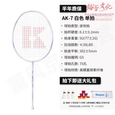 薰风(KUMPOO) 羽毛球拍全碳素专业训练级超轻动力聚合边框进攻熏风AK-7白色5U(SKU:yzwhyp927693