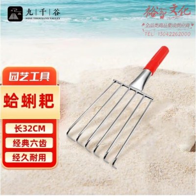九千谷1540赶海工具 海边挖蛤蜊抓螃蟹神器沙滩耙儿童装备挖沙6齿耙子 (SKU:yzwhyp927947