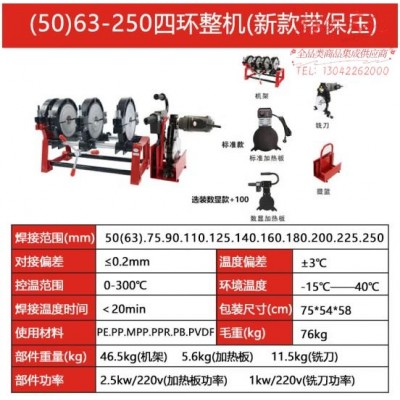 惠利得 63-160/200手动四环对焊机PE管焊接机对接机熔接热熔器焊管机 (50)63-250四环整机(带保压) (SKU:yzwhyp927957