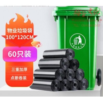 加厚黑色平口大号垃圾袋 商用酒店环卫物业场景通100*120 60只装 (SKU:yzwhyp928084