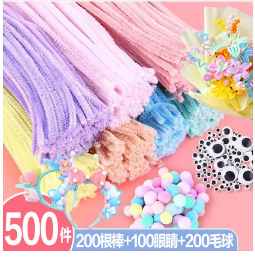 马卡龙毛根扭扭棒儿童棒花束手工diy材料包幼儿园毛绒条节日礼物 (SKU:yzwhyp928245