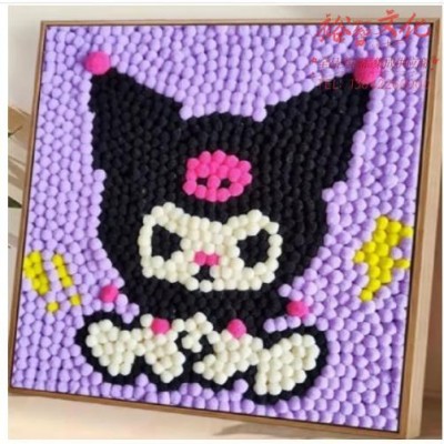 卡通儿童毛球画DIY手工材料包幼儿园送朋友创意全套粘贴艺术画 库洛米61号 20*20(全套材料包 彩色画板) (SKU:yzwhyp928246