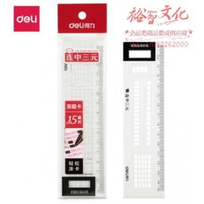 得力(deli)15cm考试直尺 连中三元系列 多功能涂卡尺学生考试专用 带涂卡框71982(SKU:yzwhyp928271