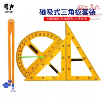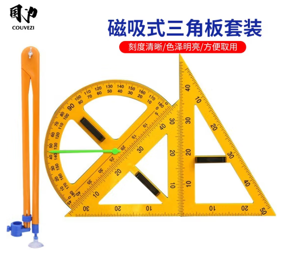 国为(COUVEZI) 磁吸式大号三角板套装教学用具三角尺塑料 教师演示用大三角尺量角器圆规数学教具 黄色三角尺套装(带圆规) (SKU:yzwhyp928319