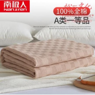 南极人全棉A类纱布 夏季薄款空调毯 午休毯子 玉色-100%新疆棉毛巾被 180cmx200cm【铺盖二用】(SKU:yzwhyp928327