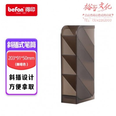 得印(befon) 斜插式笔筒收纳 多功能桌面收纳盒 简约透明笔桶笔架大容量文具办公用品 透明磨砂咖啡色2367 (SKU:yzwhyp928389