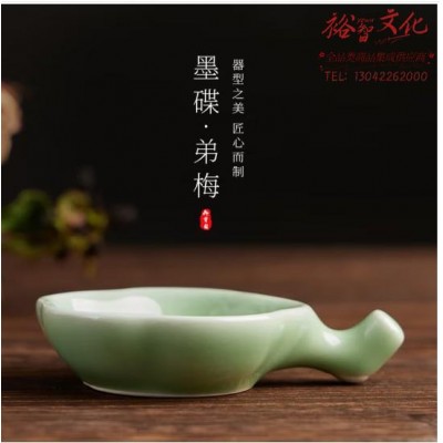 御宝阁陶瓷墨碟毛笔架子笔搁笔山文房四宝笔墨纸砚毛笔字帖水写布练字专用笔洗初学者书法用品 梅子青墨碟 (SKU:yzwhyp928401