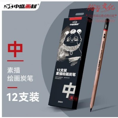 中盛画材 【中】12支盒装炭笔素描铅笔套装速写软碳笔 绘画软硬中炭画铅笔美术用品 画具画材 (SKU:yzwhyp928410