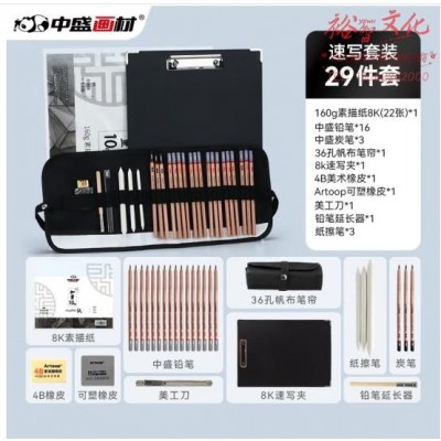 中盛画材 素描套装含素描纸速写夹帆布笔帘绘图铅笔套装 (SKU:yzwhyp928412