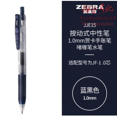 斑马牌(ZEBRA)按动中性笔签字笔 1.0mm子弹头贺卡手账笔 啫喱笔水笔 JJE15 蓝黑色 (SKU:yzwhyp928418