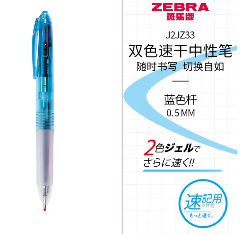 斑马牌(ZEBRA)双色中性笔 Speedy速记学霸多功能笔 0.5mm子弹头按动签字笔 J2JZ33 浅蓝杆 (SKU:yzwhyp928420