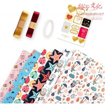 青苇 礼品包装纸6张装配丝带封口贴儿童活动生日礼物盒包装纸卡通款 (SKU:yzwhyp928426