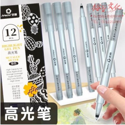 蒙玛特艺蔻系列高光笔 绘画笔美术学生漫画笔画画手绘针管勾线笔动漫设计画画笔 高光笔银色12支ATOD-CM0009 (SKU:yzwhyp928438