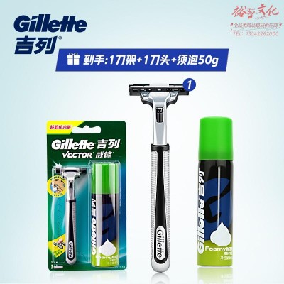 吉列 手动剃须刀 威锋旋转刀头 2层刀片(1刀架1刀头 50g须泡)SKU:yzwhyp928517