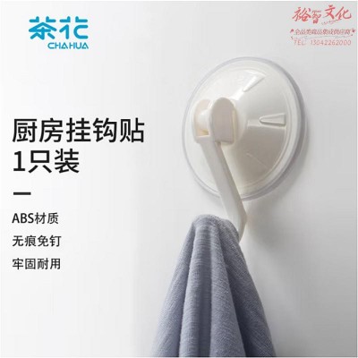 茶花 厨房挂钩贴免打孔无痕浴室挂钩强力粘钩免钉卫生间门后挂钩排挂衣架 大号1只装 2928(SKU:yzwhyp928545