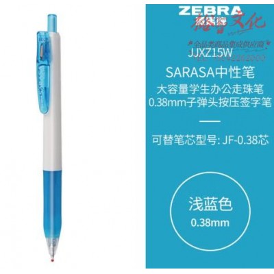 斑马牌(ZEBRA)中性笔 0.38mm子弹头按压签字笔 大容量学生办公走珠笔 JJXZ15W 浅蓝色 (SKU:yzwhyp928710