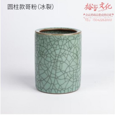 御宝阁 毛笔筒陶瓷多功能笔筒学生桌面复古创意文具收纳盒可爱简约大容量圆形笔桶摆件女ins时 圆柱款哥粉 笔筒(其他款式咨询客服) (SKU:yzwhyp928746