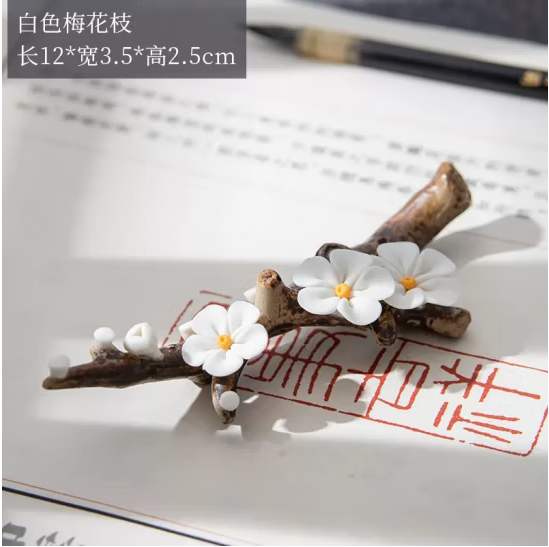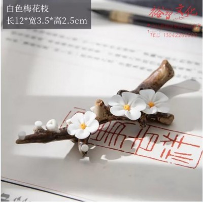 御宝阁 文房四宝梅花枝笔搁陶瓷笔山毛笔笔架创意书法用品书法桌摆件架托学生放毛笔的托书法工具香插香座镇纸 梅花枝 陶瓷笔搁 (SKU:yzwhyp928747