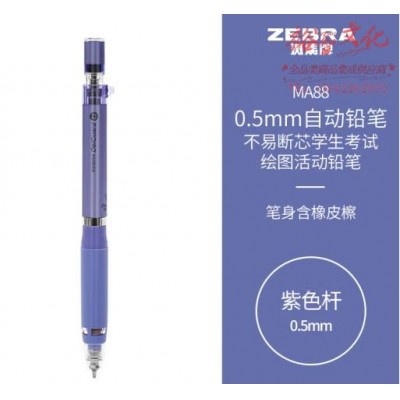 斑马牌(ZEBRA)0.5mm不易断芯自动铅笔 学生绘图书写活动铅笔 笔身含橡皮檫 MA88 紫色杆 (SKU:yzwhyp928748