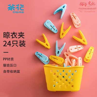 茶花 衣架夹子 塑料晾衣夹子 固定夹袜子 夹衣服晒被子床单防风夹子 黄/蓝/粉 24只装 28541K(SKU:yzwhyp928798