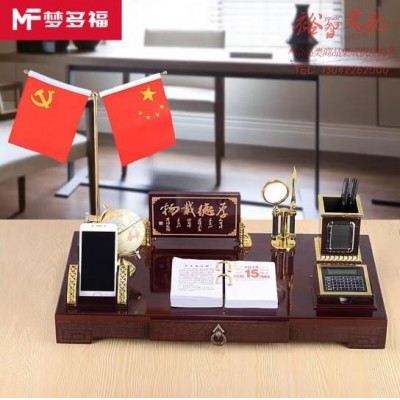 梦多福 摆件台历架 办公室摆件木制商务桌面摆设老板文台笔筒送礼 厚德载物双旗款(60x30cm) 礼盒装 (SKU:yzwhyp928890