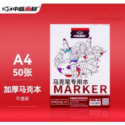 中盛画材 【加厚50页】马克本马克笔专用纸动漫设计手绘图画本素描A4 120g专业不扩散 (SKU:yzwhyp929015