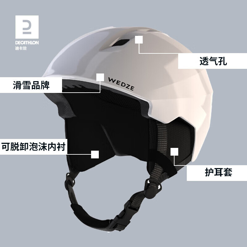 迪卡侬 滑雪头盔男女单板双板保暖透气滑雪白色55-594789857 (SKU:yzwhyp929033