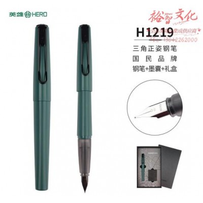 英雄(HERO)钢笔礼盒年会奖品 H1219铱金笔探索者系列 墨绿黑夹 学习用品墨囊两用书法练字硬笔 (SKU:yzwhyp929076