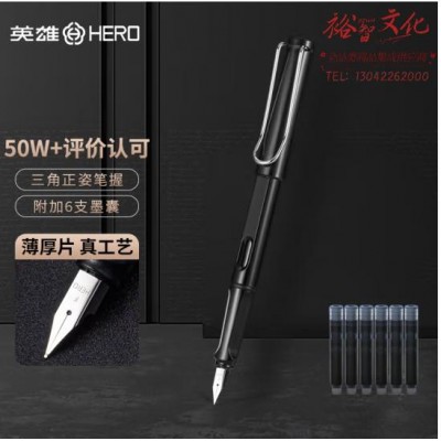 英雄(HERO)钢笔359 正姿 黑色 F尖薄厚片工艺学生练字钢笔 (附加6支墨囊颜色随机)铱金钢笔签字笔 (SKU:yzwhyp929081