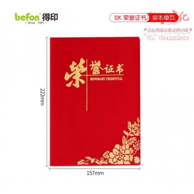 得印(befon)12K绒面烫金荣誉证书10本装 奖状获奖证书封皮外壳表彰奖励当选先进个人证书附a4内芯牡丹花款 8291 (SKU:yzwhyp929088