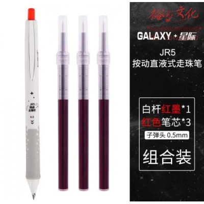 白雪(snowhite)按动中性笔0.5mm笔芯直液式走珠笔速干 学生考试签字笔 GALAXY星际 红笔1支 3笔芯 (SKU:yzwhyp929106
