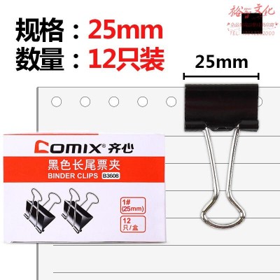 齐心(COMIX)12只装25mm黑色长尾票夹B3608(SKU:yzwhyp929114