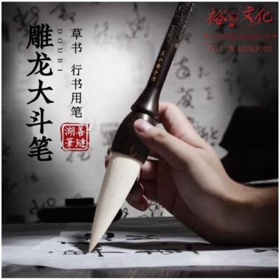 善琏湖笔 斗笔狼毫毛笔特大号大字笔写对联纸毛笔兼毫提斗笔抓笔楂笔书法国画榜书楷书隶书专用春节 雕龙小 (SKU:yzwhyp929119