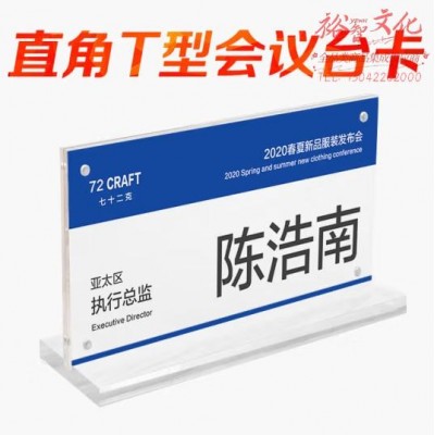 巨联 100X200会议座牌 开会席卡架席位牌会议桌座位牌透明立牌卡牌桌双面三角亚克力台卡台牌桌牌 直角T型会议牌 (SKU:yzwhyp929185