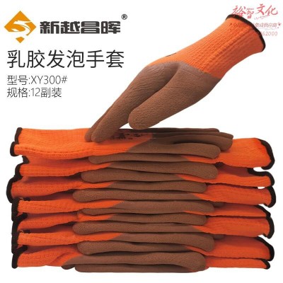 新越昌晖乳胶发泡手套 劳保手套 浸胶防滑耐磨透气皱纹涂胶手套 工作维修防护手套XY300# L码12副(SKU:yzwhyp929266