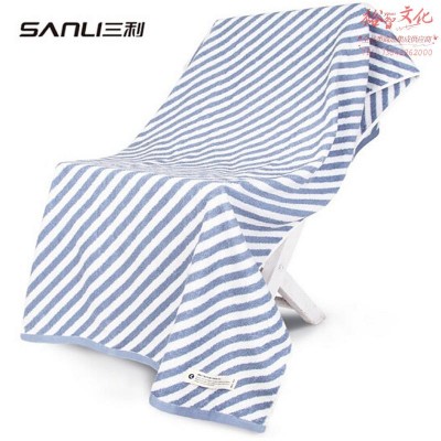 三利 浴巾纯棉A类色织大浴巾新疆棉花全棉柔软吸水加厚带挂绳裹身巾73*142cm 蓝色(SKU:yzwhyp929267