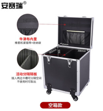 安赛瑞 铝合金拉杆箱 多功能电工维修五金工具箱 设备仪器仪表收纳箱 空箱黑色 200735(SKU:yzwhyp929355