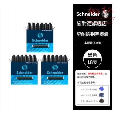 钢笔墨囊墨水胆非碳素不堵笔德国进口欧标钢笔适用3盒/18支装 黑色6601 (SKU:yzwhyp929424