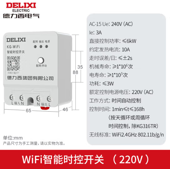 德力西电气 时控开关定时器智能定时开关控制器 KG-WiFi 220V (SKU:yzwhyp929575