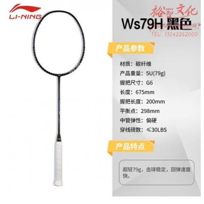 李宁(LI-NING)羽毛球拍单拍风暴79H版全碳素5U超轻可拉30磅小黑拍 已穿线(SKU:yzwhyp929615