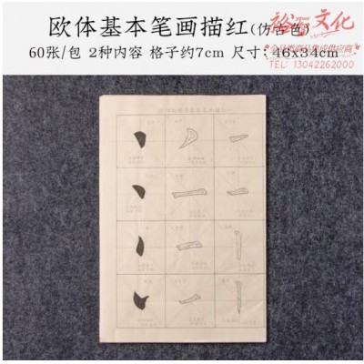 張小鳳 笔画描红练字毛笔楷书初学者欧体柳公权临摹字帖成人毛笔字练习纸入门小学生软笔毛笔纸颜体宣纸 欧体基本笔画描红 仿古色 (SKU:yzwhyp929641