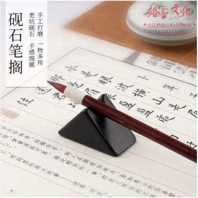 御宝阁 文房四宝砚石笔搁毛笔笔架多功能笔托笔山创意文房四宝摆件学生放毛笔的小笔搁迷你小镇尺镇纸书法用具 砚石笔搁 石 (SKU:yzwhyp929647