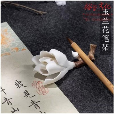 御宝阁 玉兰花笔架陶瓷笔山毛笔架子笔搁创意文房四宝摆件搁笔架书房收纳香插香座线香底座书法用品 玉兰花 陶瓷笔架 (SKU:yzwhyp929648